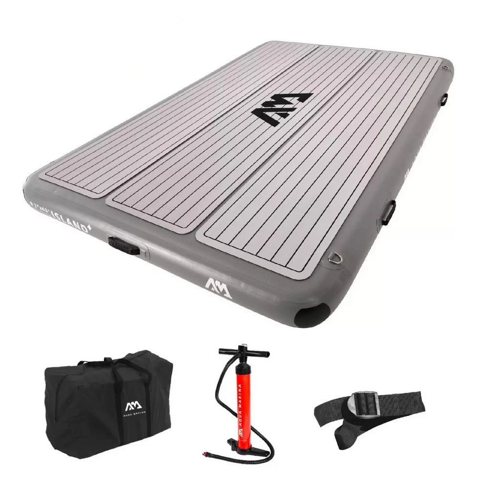 La plateforme gonflable Aqua Marina Island, est un îlot flottant convenant à la pratique de nombreuses activités telles que nager, s’amuser sur l’eau, se détendre ou même travailler sur la coque de votre bateau, elle revient aujourd’hui dans une version améliorée : le modèle Island +. Construite dans des matériaux résistants, ses dimensions autorisent de 1 à 4 personnes dessus et son astucieux système d’œillets permet de l’attacher à des supports extérieurs et même de fixer plusieurs plateformes entre elles si besoin !