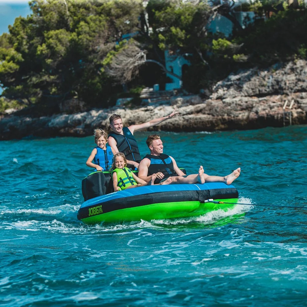 Plus besoin d’attendre votre prochaine virée dans un parc d’attraction, optez pour la bouée tractée Jobe Swath Towable 4 personnes et vivez des moments amusants en famille ou entre amis ! Le plus difficile ? Attendre son tour !