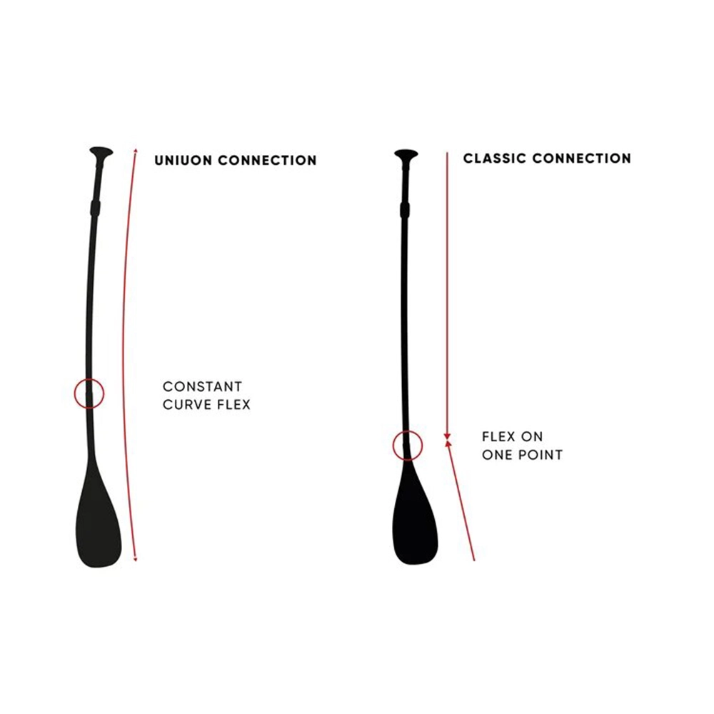 La pagaie Fanatic Union System s’étend de manière transparente de la pointe de la lame jusqu’au manche. Le joint de connexion est plus sur l’arbre, ce qui donne une flexion constante pour un ressort et une réponse optimale à chaque coup. Une fois la lame dans l’eau, votre énergie est convertie en propulsion.