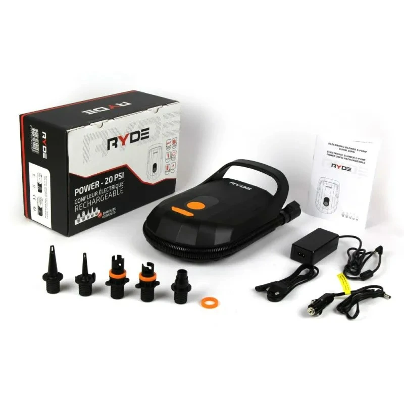 La pompe électrique pour Stand Up Paddle max. 20 PSI Ryde est une solution pratique et facilement transportable pour gonfler les équipements gonflables tels que les kayaks, les matelas pneumatiques ou les bouées. Rapidité, précision et polyvalence.