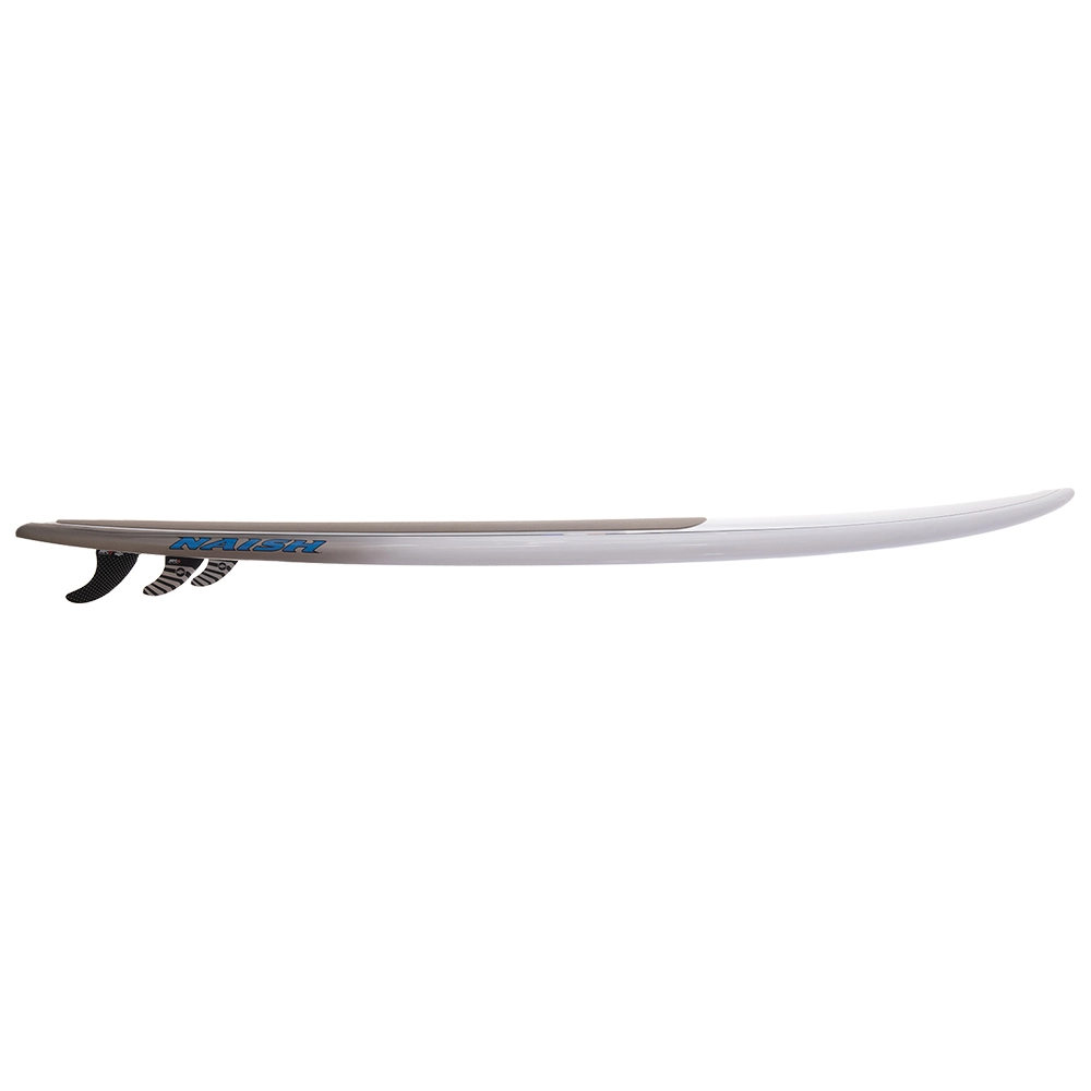 Afin de faciliter vos manœuvres, la forme du fond en V et le tail rocker exagéré offrent une grande capacité de rotation. L’outline extra-large permettra quant à lui de donner de la confiance et facilite grandement la navigation du rider.