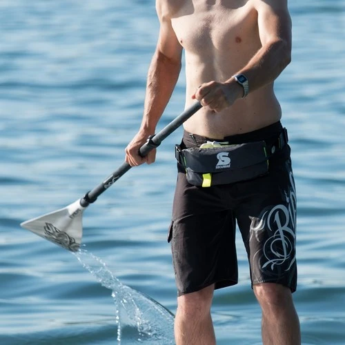 Le système de sauvetage Secumar Free 100 a été développé pour tous les pratiquants de sports de glisse nautique ou pour ceux qui nagent régulièrement. Portée à la ceinture, cette poche renferme une enveloppe gonflable minutieusement pliée. Elle ne gêne pas lors de la nage ou du sport pratiqué. En cas de situation d’urgence, il suffit de sortir l’enveloppe gonflable hors de la poche au-devant du torse et de l’enfiler ensuite facilement par-dessus la tête. La cartouche de CO2 est activée par déclenchement manuel et permet de gonfler rapidement l‘enveloppe gonflable. La flottabilité générée permet de stabiliser la personne en difficulté, sa tête maintenue au-dessus de la surface l’eau. Le Secumar Free 100 est un excellent système de sauvetage pour les activités de nages en eau libre et pour les sports de glisse nautique.